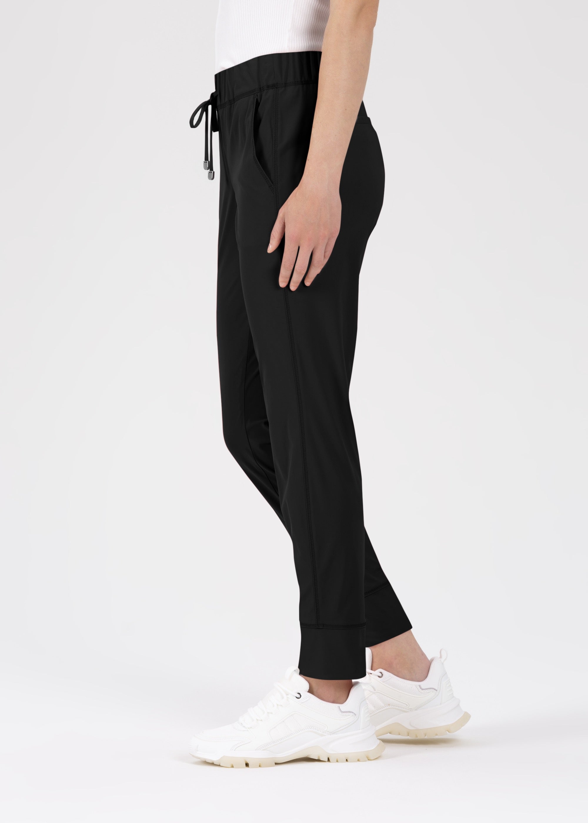 Jogpants: am Oberschenkel sitzt die Jogpants locker, das Hosenbein läuft jedoch schmal zu. Oft besitzt sie einen elastischen Bund mit Bindeband und wird so zur gemütlichen Pull-On Hose. Die Jogpants ist sportiv und trotzdem stylish.