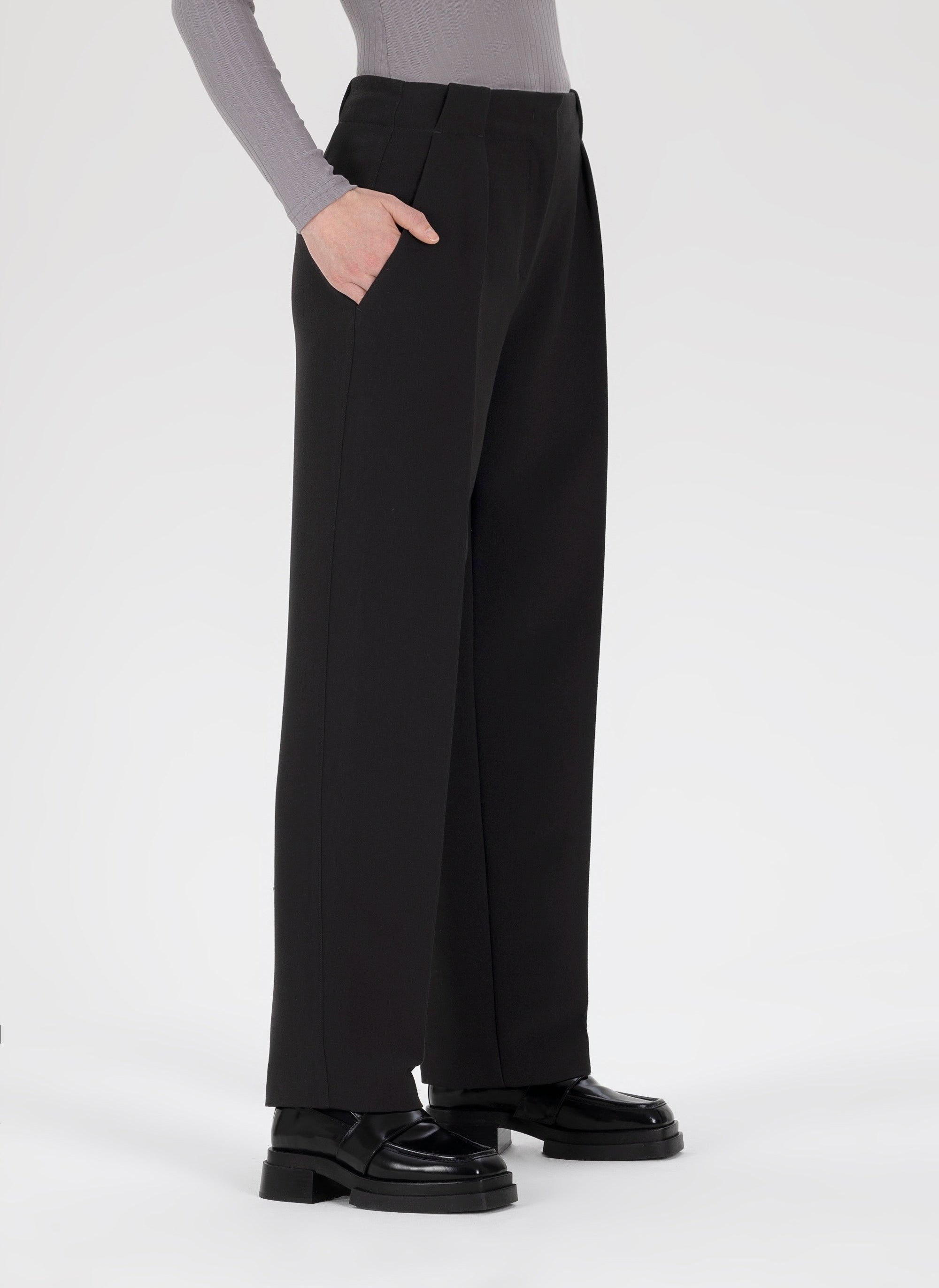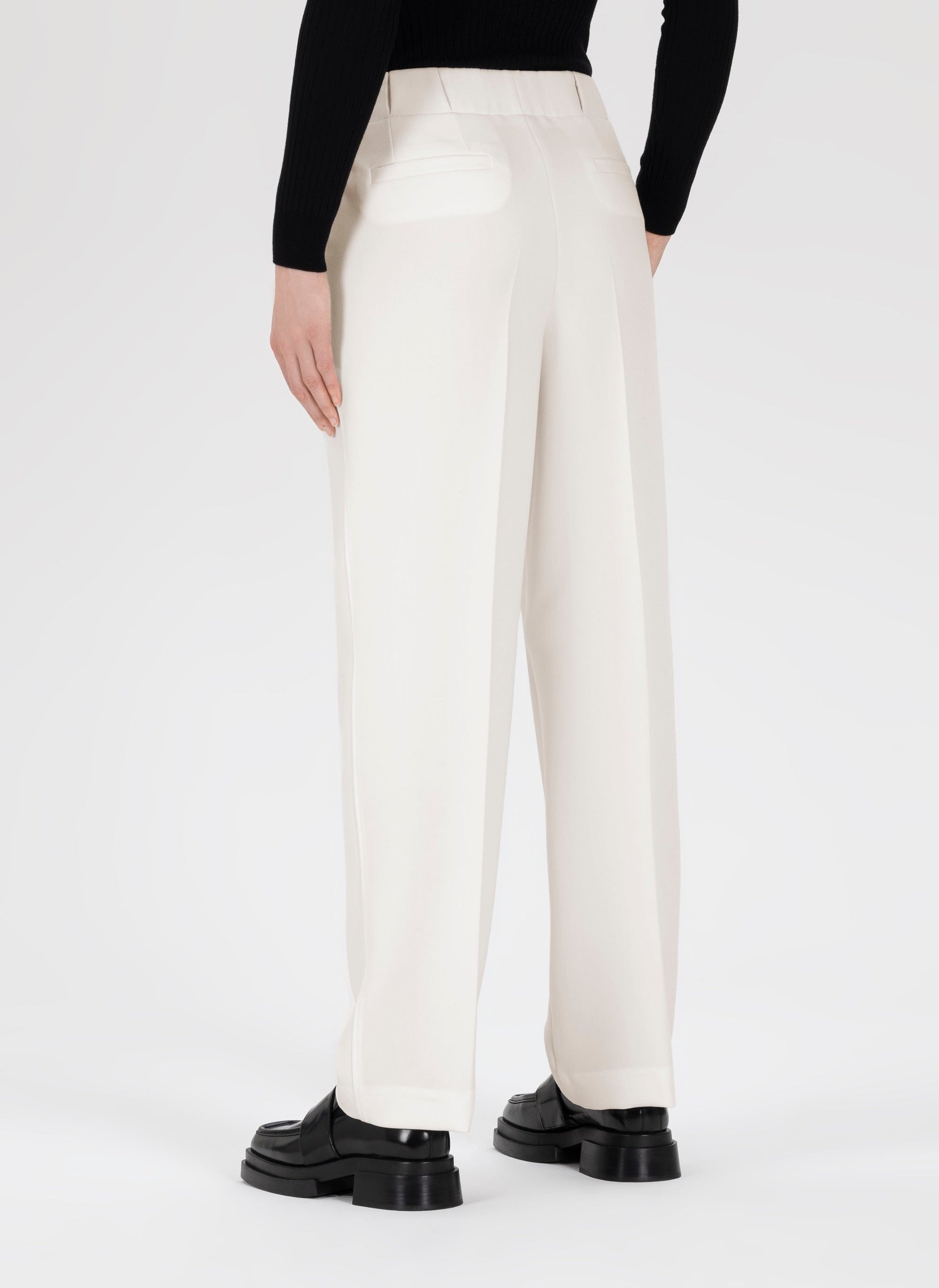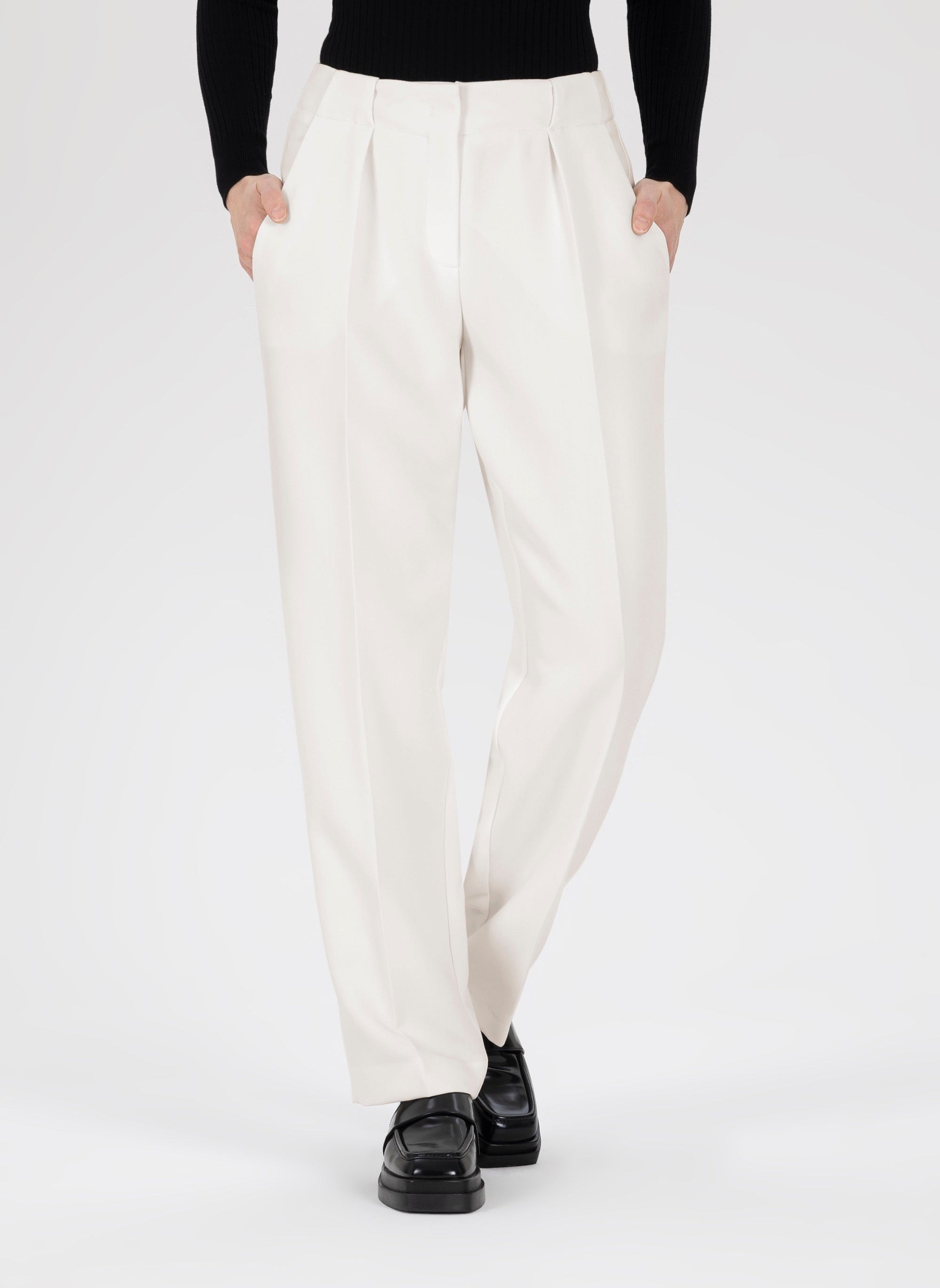 - Auch am Abend, kombiniert mit feinen Stoffen, Absatzschuhen und dezentem Schmuck, beweist die Anzughose, wie wandelbar sie wirklich ist.