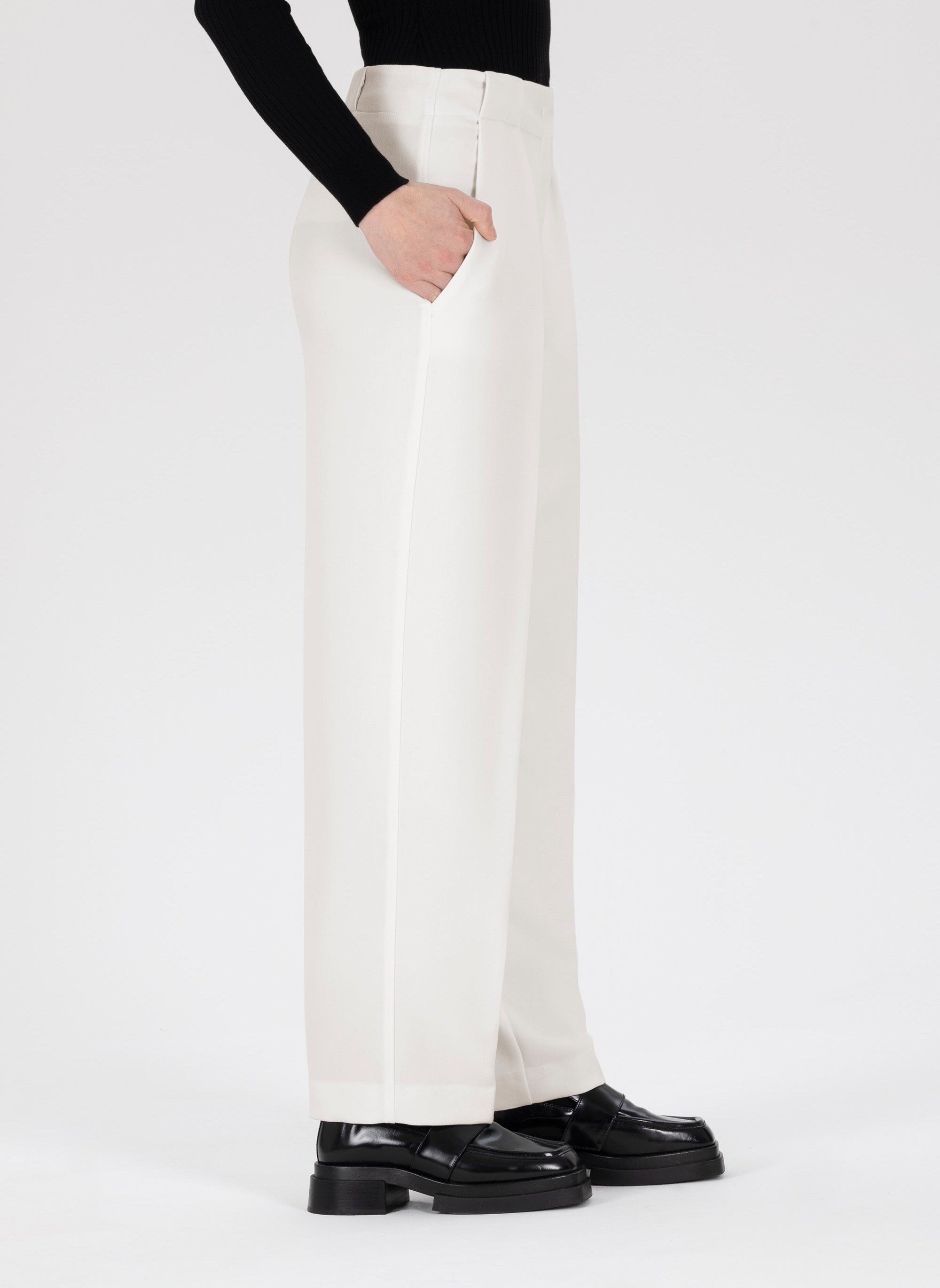 Im Vergleich zu Jeans oder Chinos wirkt eine Anzughose sofort durchdachter, ohne streng zu sein. Sie steht für eine gewisse Leichtigkeit im Stil, ideal für Frauen, die Wert auf Präsenz und Komfort zugleich legen.