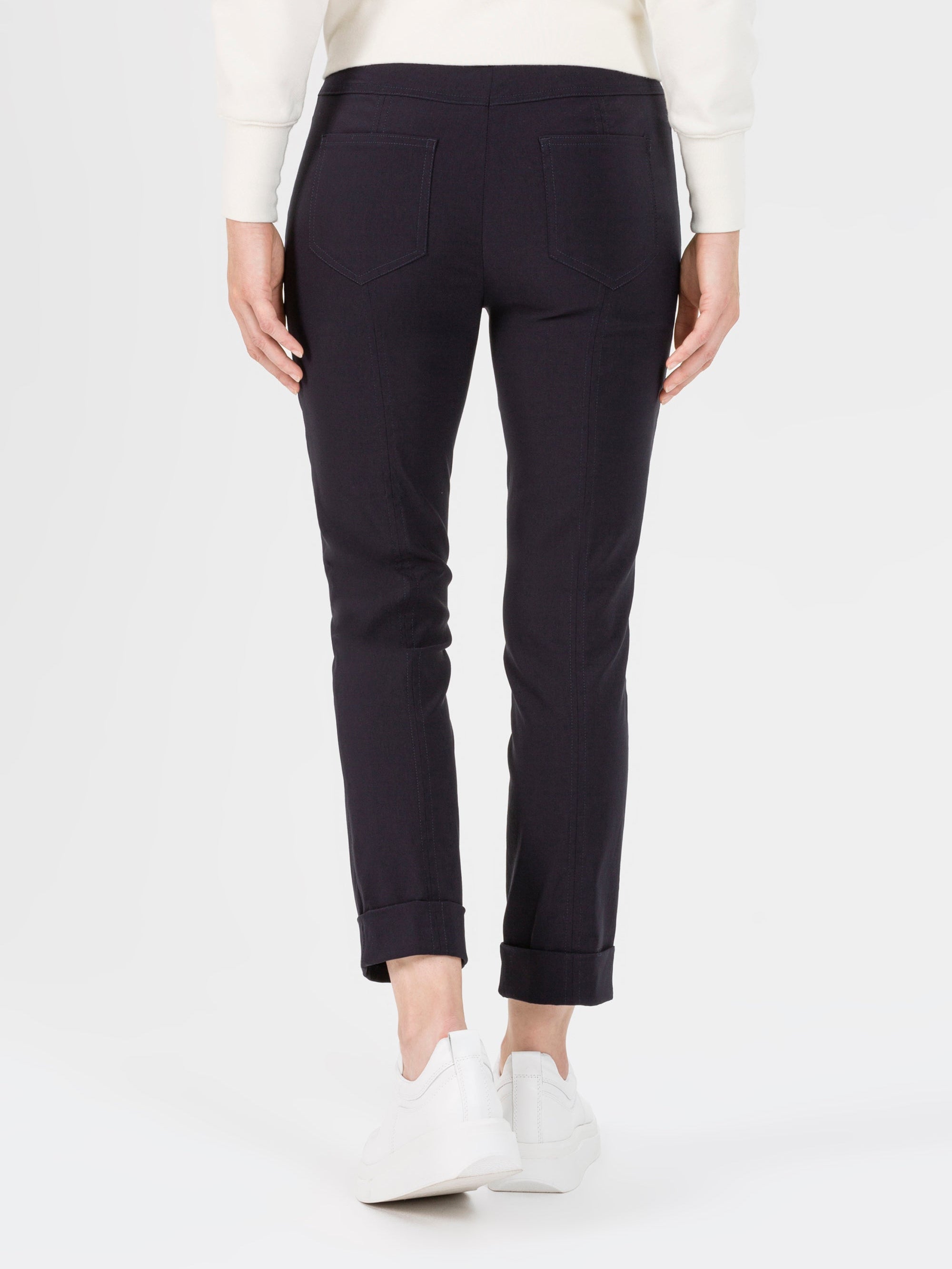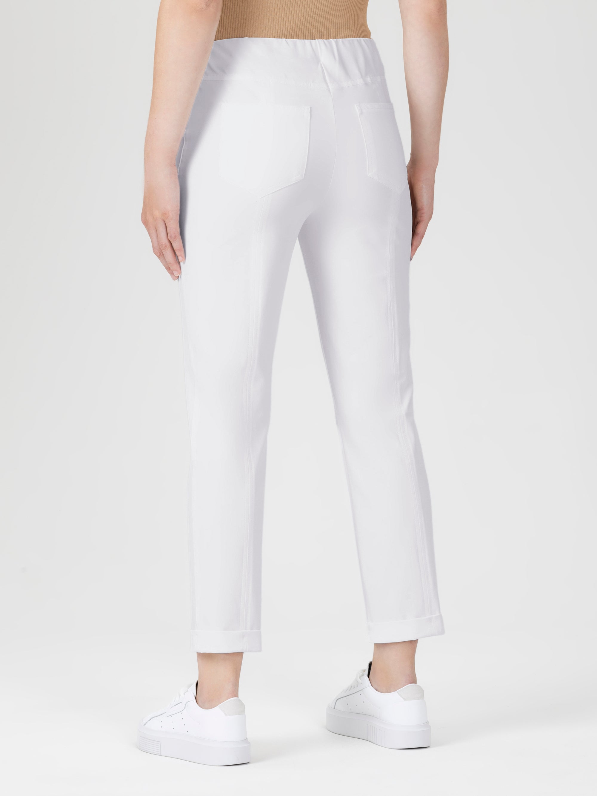 Eine Pull-On Hose ist für ihren außergewöhnlichen Komfort bekannt. Im Gegensatz zu klassischen Hosen mit Knopf und Reißverschluss, haben diese Hosen einen elastischen Bund und sind dadurch leicht und schnell angezogen. Der elastische Bund sorgt dafür, dass die Hose perfekt sitzt, ohne dich einzuengen. Dadurch entsteht ein gleichmäßiges, elegantes Erscheinungsbild, das deine Figur vorteilhaft betont.