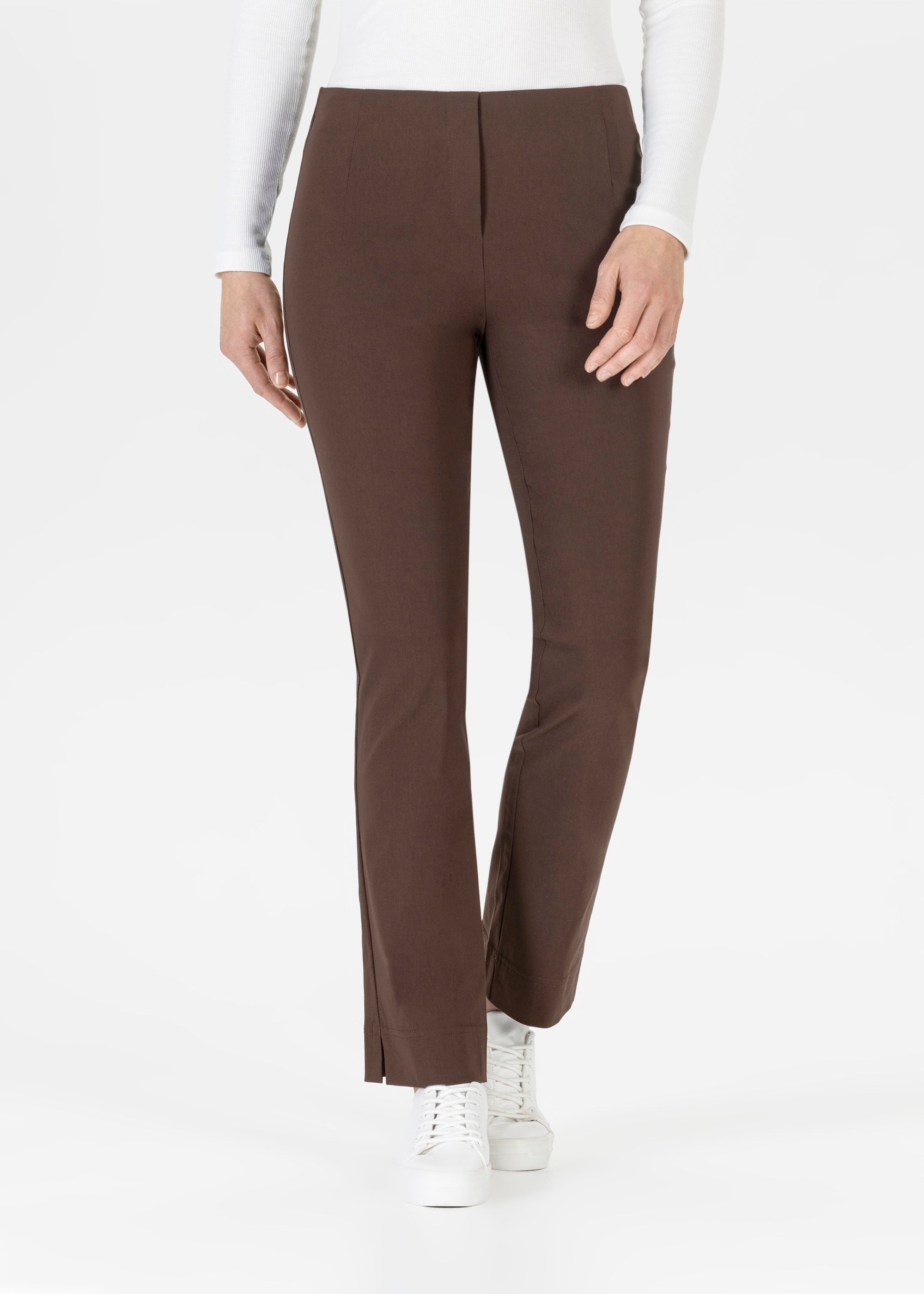- Hoch taillierte Pull-On Hosen: Diese Modelle betonen deine Taille und schaffen eine feminine Silhouette. Sie sind ideal, um deine Kurven hervorzuheben und eignen sich sowohl für den Alltag als auch für besondere Anlässe.