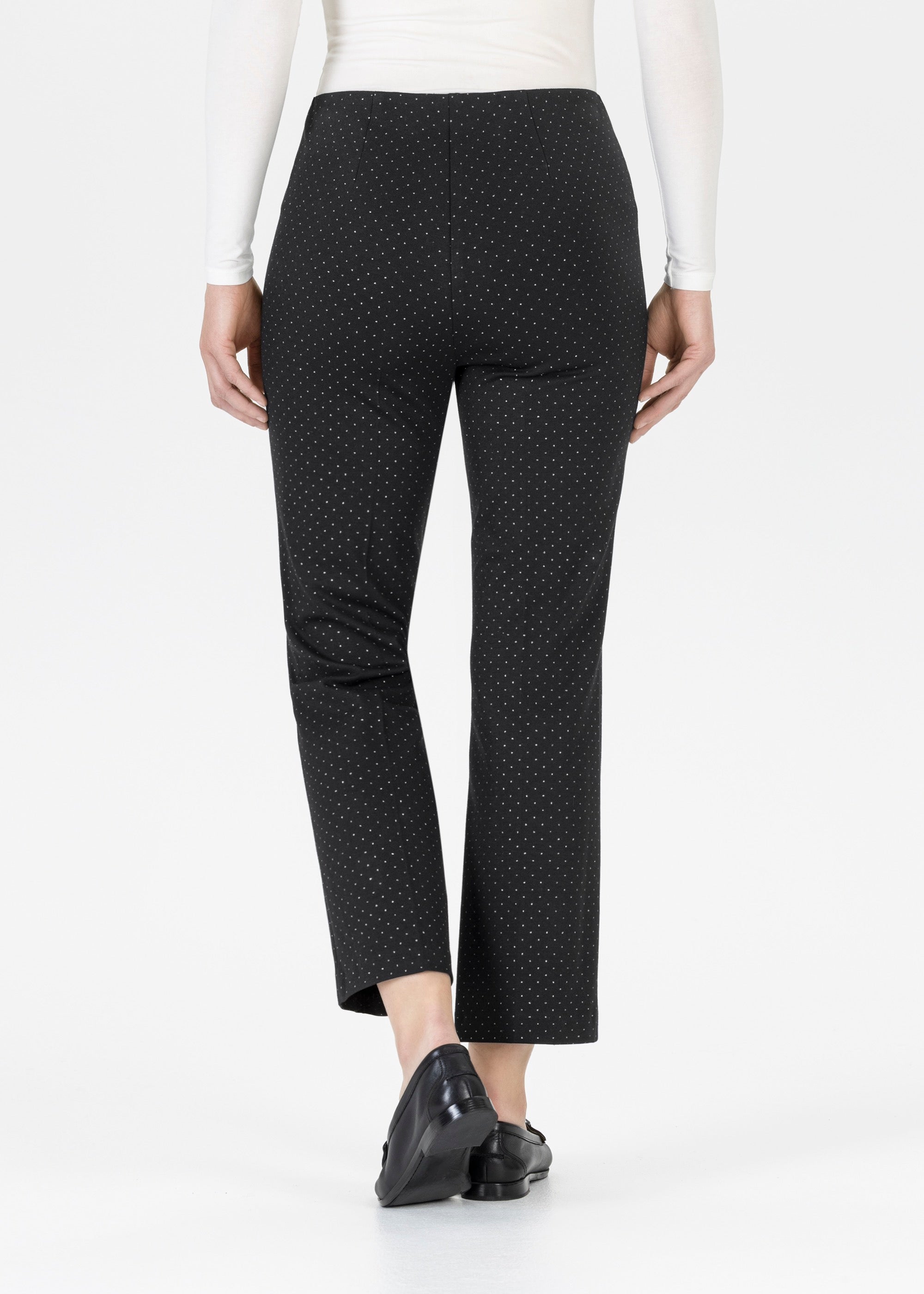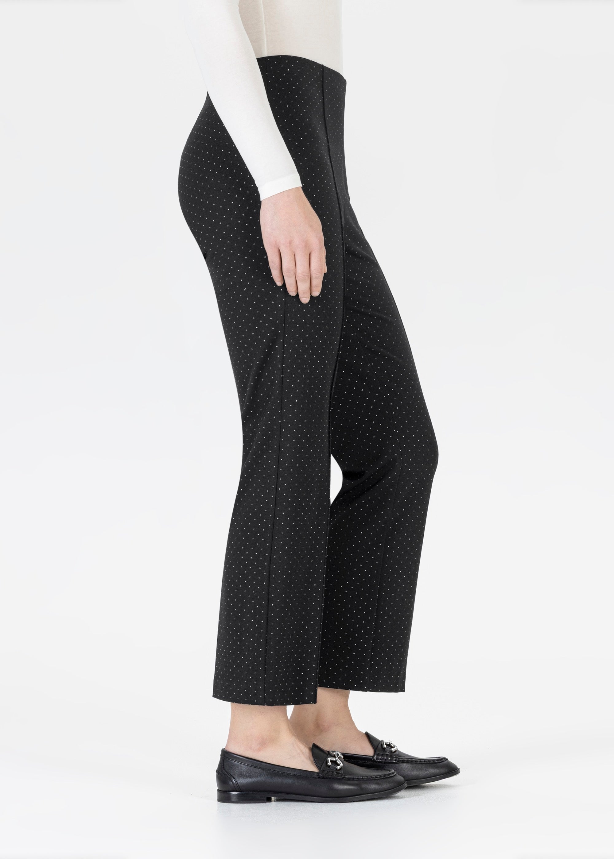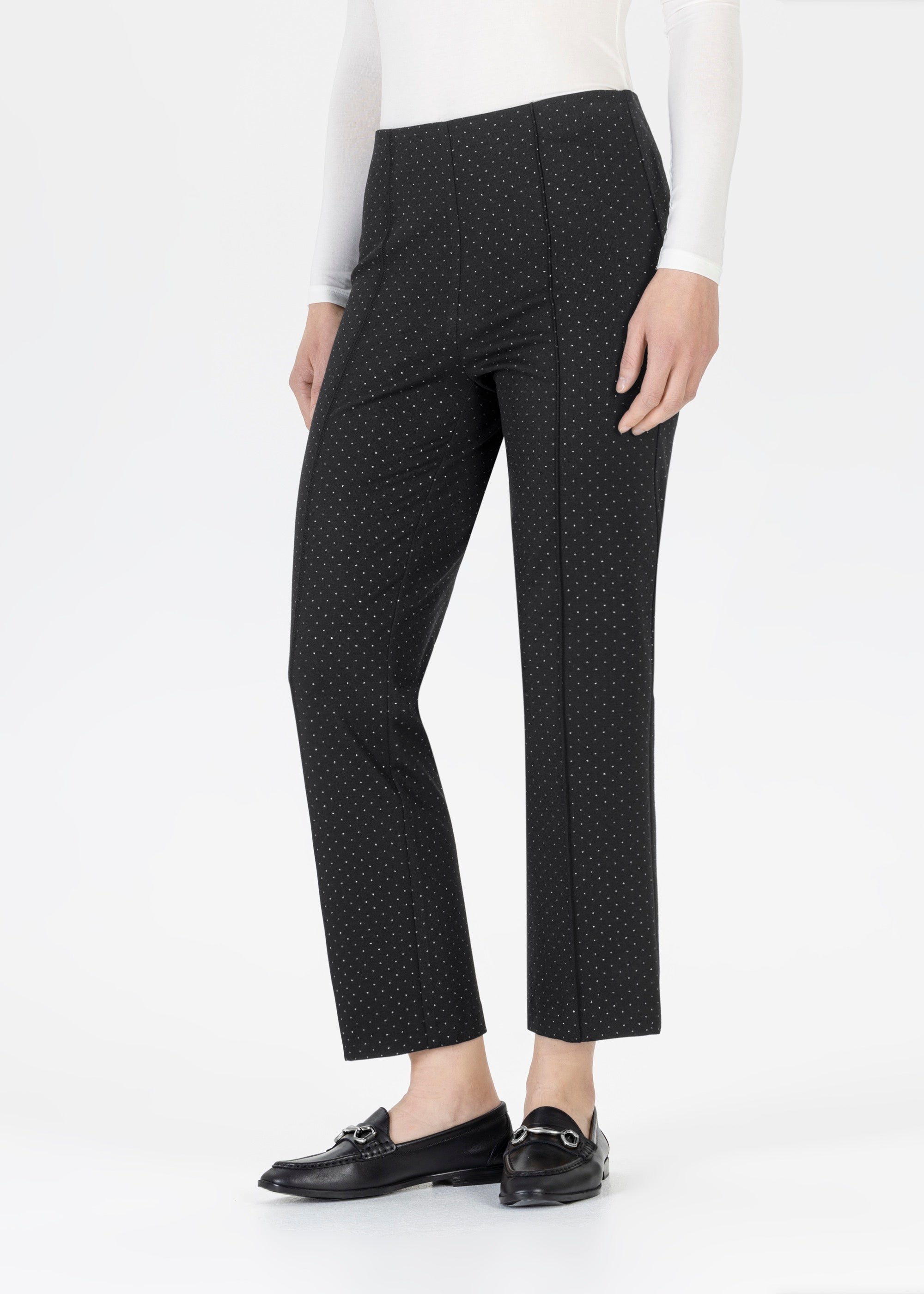 - Im Büro: Wie wär´s mit einem lässigen Layering-Look? Kombiniere eine schwarze Pull-On Hose mit einer weißen Bluse und einem Blazer drüber. Elegante Loafers runden den casual Stil ab.