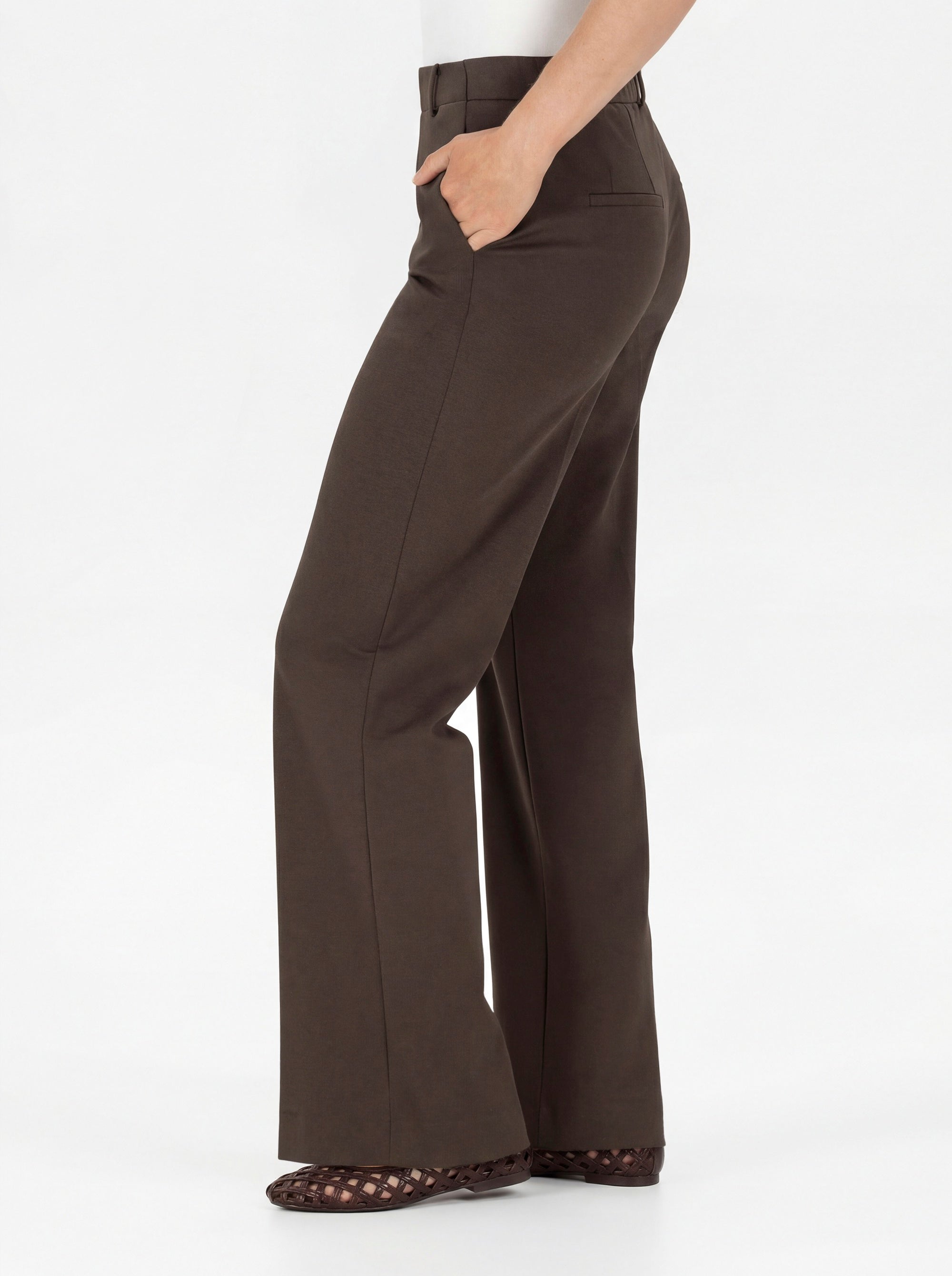- Beinweite: Je nach gewünschtem Stil kann die Weite variieren – von dezent ausgestellt bis hin zu extra weit geschnittenen Hosen. Besonders trendig sind weite Hosen für Damen, die mit einem fließenden Stoff eine edle Bewegung ins Outfit bringen.