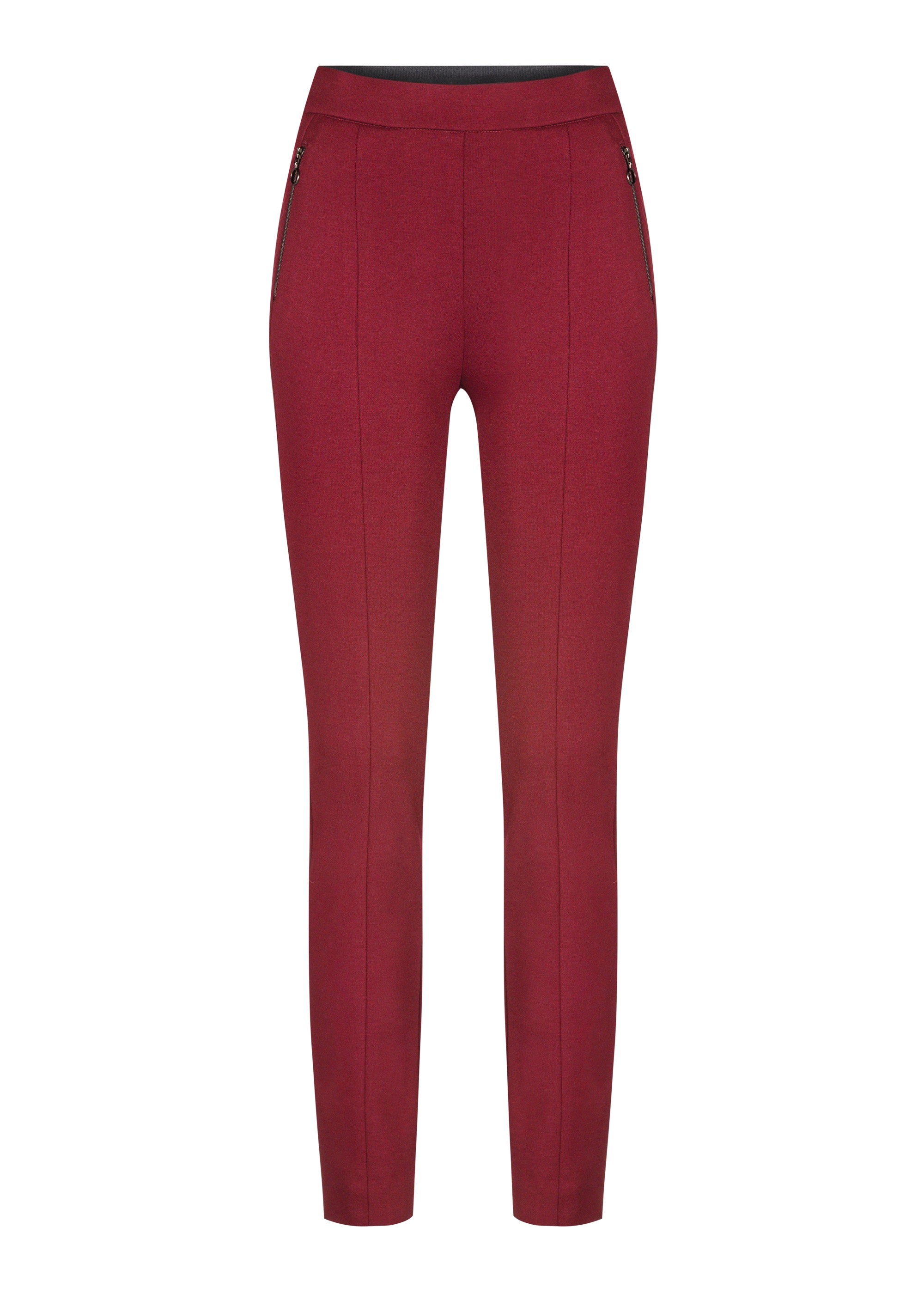 Imilia ist eine knöchellange Hose aus hochwertigem Jersey, der viel Tragekomfort bietet. Gestaltet mit Teilungsnähten und Reißverschlusstaschen vorne.